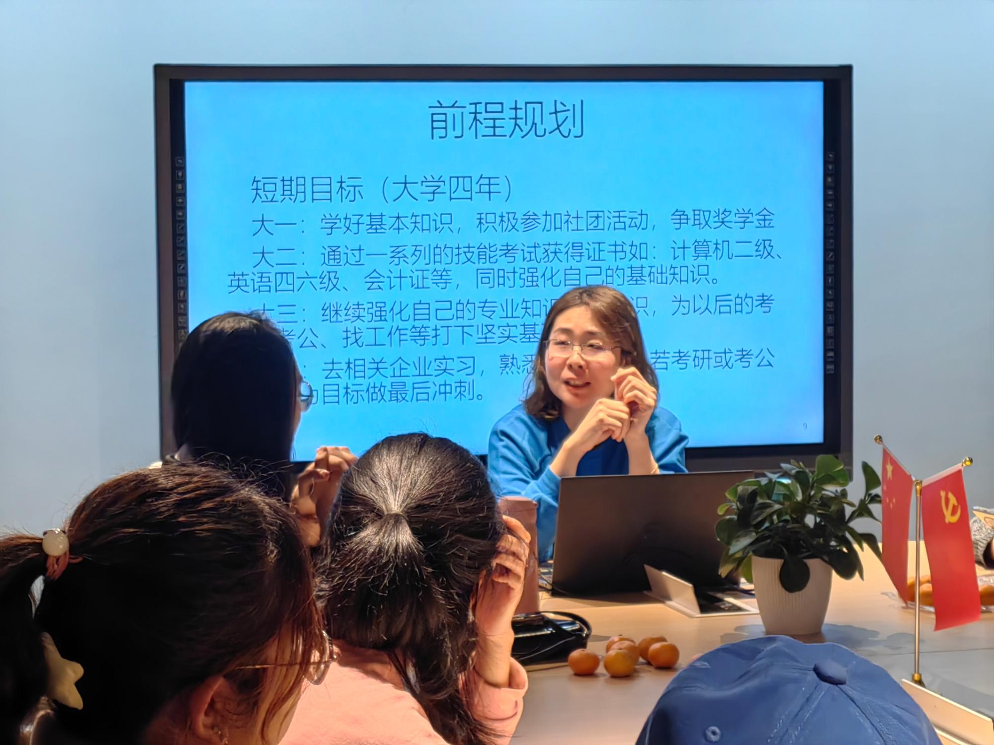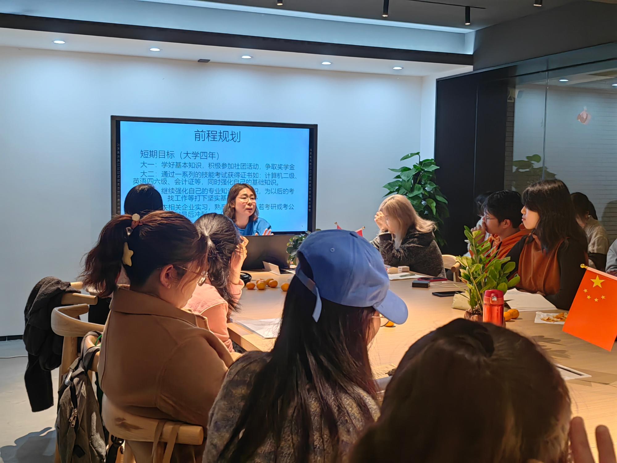的任玉函老师作为本次活动的主讲,以“写给四年后自己的一封信——大学生涯规划”为主题,与同学们交流讨论大学四年应当如何进行合理的规划与安排。同时,本次沙龙还邀请了会计学院的20级学生项苏锐来分享自己过去两年的经历与接下来的规划。辅导员顾雨濛以及22文学3班全体同学参加了本次活动。