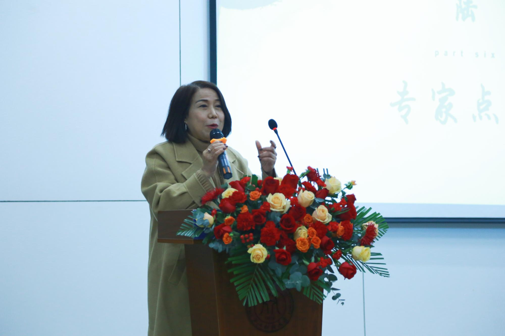 王阿蒙老师主持了点评环节,浙江日报社王建龙校友肯定了视频类作品的整体表现,表达了对作品《融化社恐的温度》、《履》的欣赏,他认为作品创意是核心,具备了这个“本”,下一步再去打造作品的“枝叶”。他还赞赏了作品《干票大的》故事完整,让人看到其中的巧思;《香茶里的松阳》系列短视频具有松弛舒适的配音。
