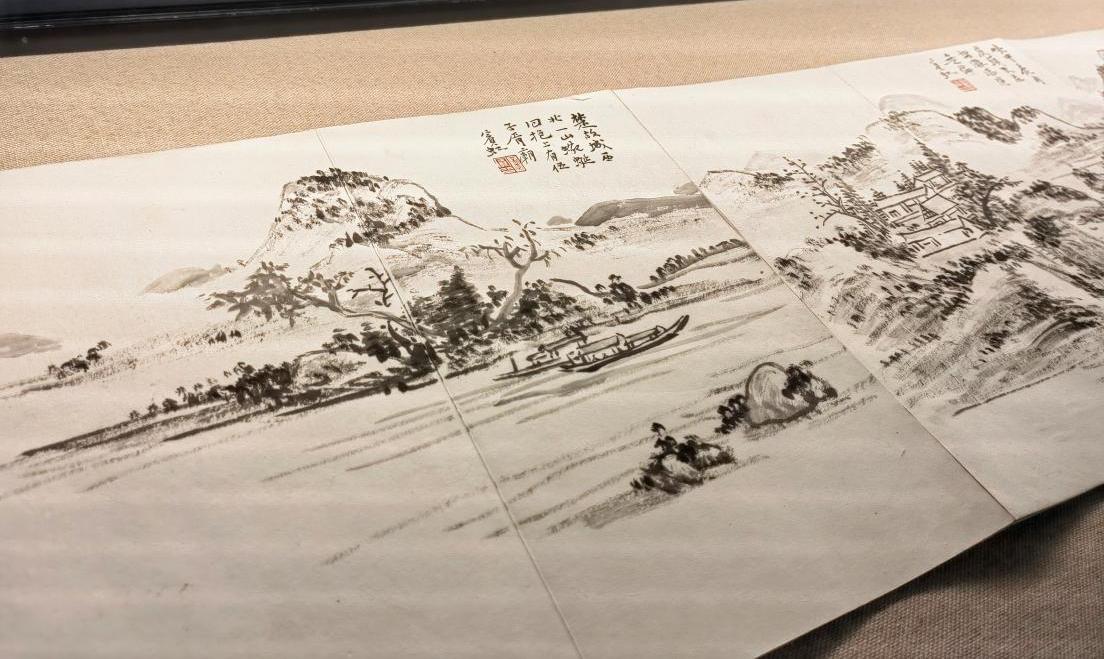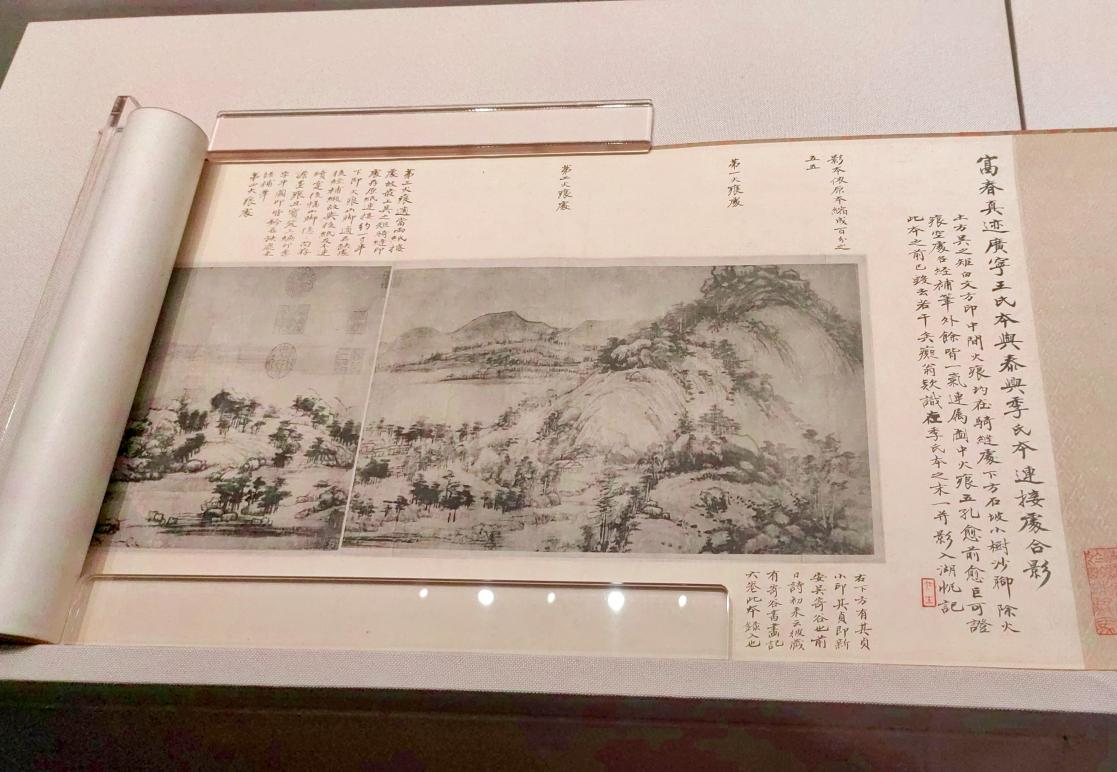 在讲解员老师的带领下,师生们一起走进了宋韵江南书画的艺术世界,近40件书画展品将一条从宋、元、明、清到近现代江南地区的千年宋韵书画艺术文脉展现在大家眼前。《溪山访友图》让我们感受高山壮阔之美,《雪屐观梅图》又好似能让我们嗅到寒意中的那一缕幽香。特别是国宝级文物《富春山居图(剩山图)》的展出,淡雅的墨色中透露出国画的无限生命力,前往观赏的同学络绎不绝。