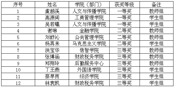 “浙财·青年说”青春使命教育主题宣讲大赛获奖名单