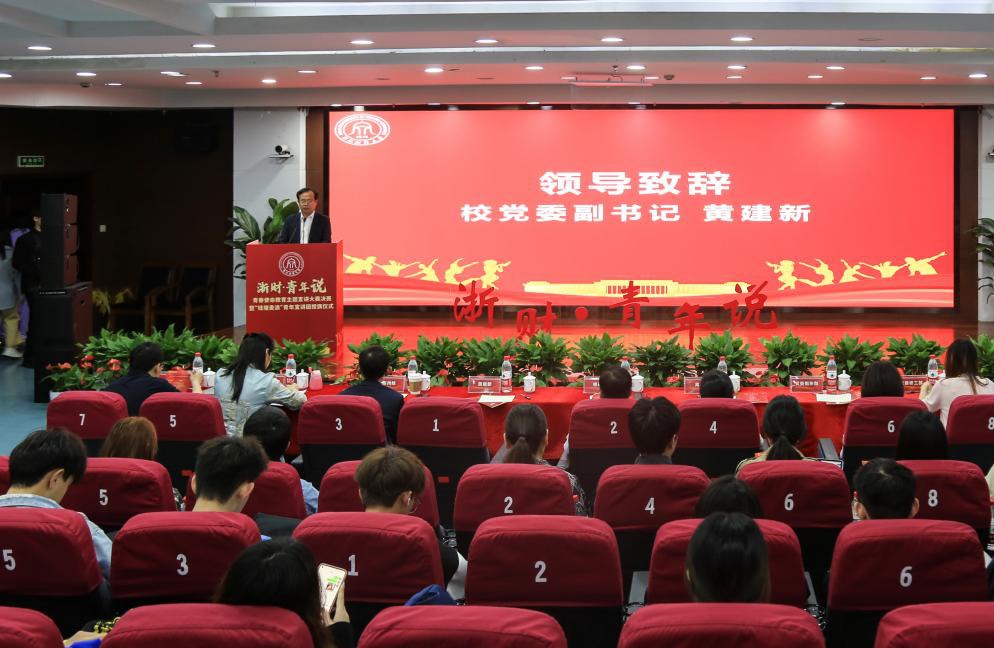 4月20日,“浙财·青年说”青春使命教育主题宣讲大赛决赛暨“钱塘麦浪”青年宣讲团授旗仪式在下沙校区举行。校党委副书记黄建新,党委委员,组织部、宣传部、统战部部长楼胆群,钱塘团区委副书记陈州峰出席。学校相关职能部门负责人及师生代表共计200余人参加。