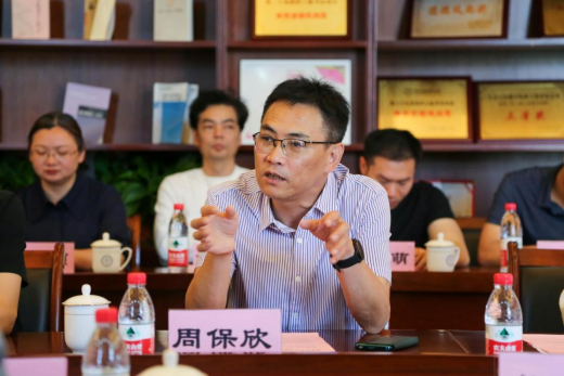 周保欣介绍了学院的基本情况及学院各研究平台建设成果。他表示,双方将加强交流沟通,发挥资源优势,拓宽合作范围,开展多元共建,在校园文化建设、人才培养、教育教学、实训基地建设等多方面深化合作,实现共赢。