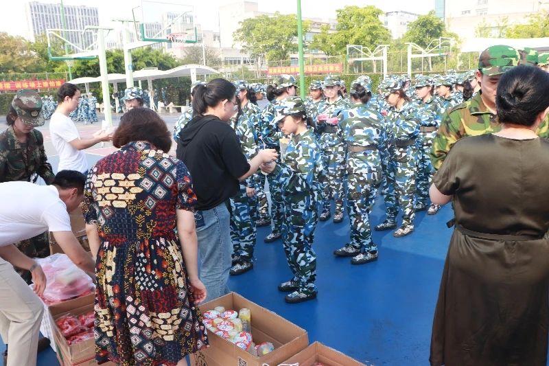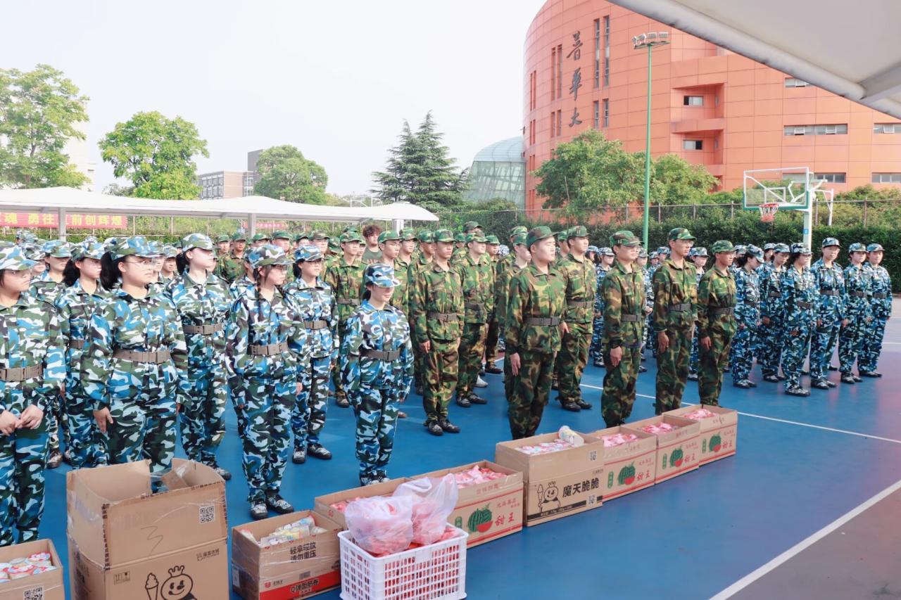 全体2023级参加军训的学生送上冷饮和西瓜等慰问品,并叮嘱大家军训期间注意身体,及时补充水分防止中暑,安全施训。