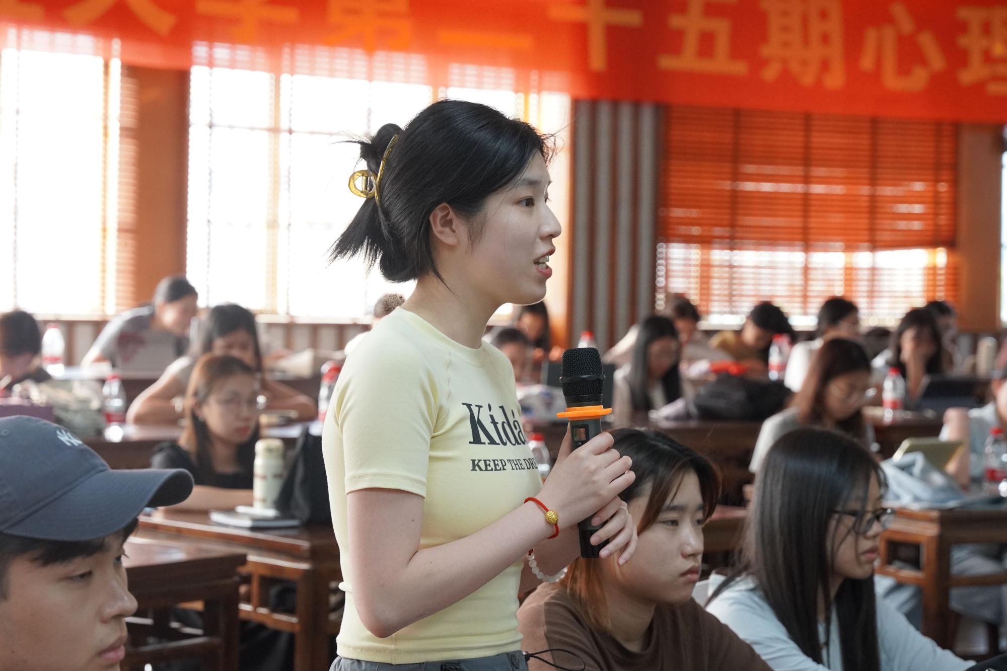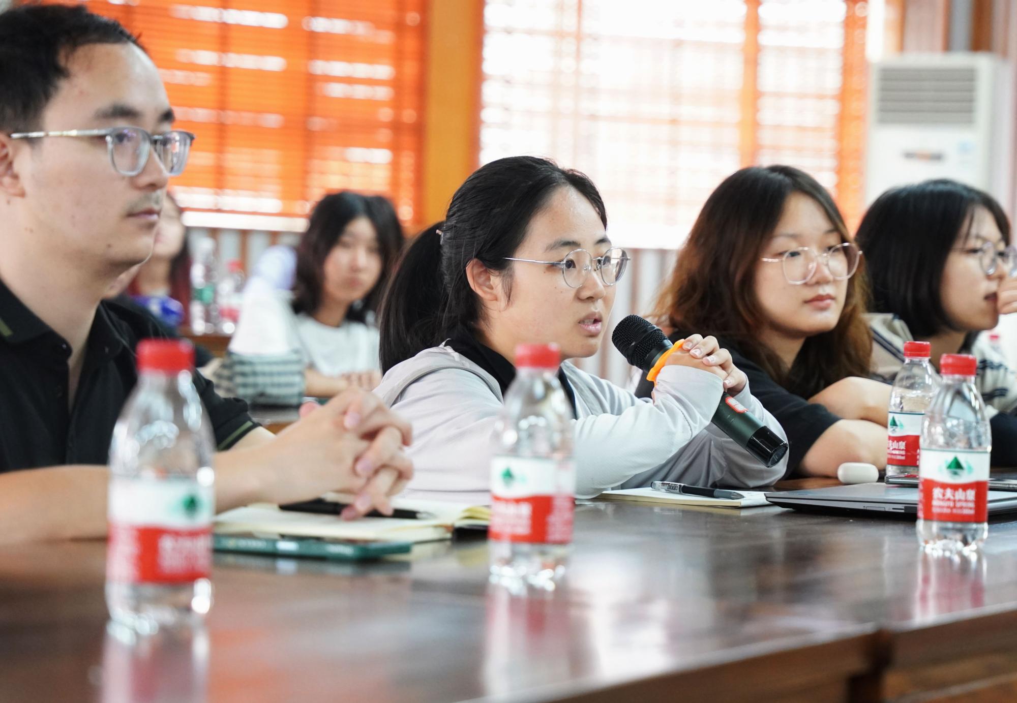 听完黄咏梅老师对这四个维度的解读,同学们百感交集,接二连三地拿起话筒与黄老师展开了面对面的交流。其中一位同学对于“苦难”的认识深刻独到,他直言道:“苦难本身不值得歌颂,但是生活常有苦难,很多时候我们无法避免苦难的发生,基于此或许我们应该具备面对乃至承受苦难的能力。”这一具有辩证性的发言霎时赢得满堂喝彩。