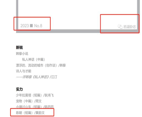 2019级汉语言文学专业学生黄韵文。 小说《陈朝》发表于《西湖》杂志2023年第8期 ,同时,该同学的诗歌《秃鹫》等组诗经由黄咏梅老师推荐入选由“第五届长三角新青年诗会”。