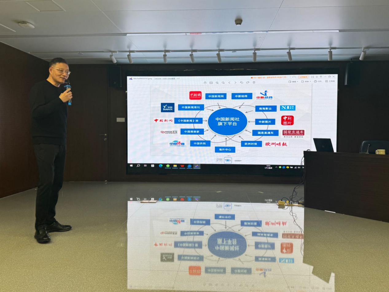 副社长严格与师生们亲切交流。他向大家介绍了中新社浙江分社的工作情况。中新社致力于“四个平台”的建设:一是打造国际传播平台,中新社的定位是要让国际社会了解中国,为海外媒体提供来自中国的声音,讲好中国故事。中新社每天为世界各地媒体提供大量的图片、文字、视频等形式的新闻产品,并运营多家官方机构海外账号。二是创立文化交流平台,“我们非常重视把打造自己成一个文化产品机构”,通过“中国大运河文化带京杭对话”“良渚古城∙雅典卫城:中希文明对话”等活动,运用中国的IP、中国故事去进行不同地域、不同文明的碰撞,打造特殊的文化产品。三是与科技公司合作建设科技平台,如“云梯”项目在大厦电梯中安置展示终端,用以发布新闻和信息。四是与各大高校、研究所合作打造智库平台,为社会提供公共产品,如与浙江大学合作的“中国县域治理大讲堂”项目。