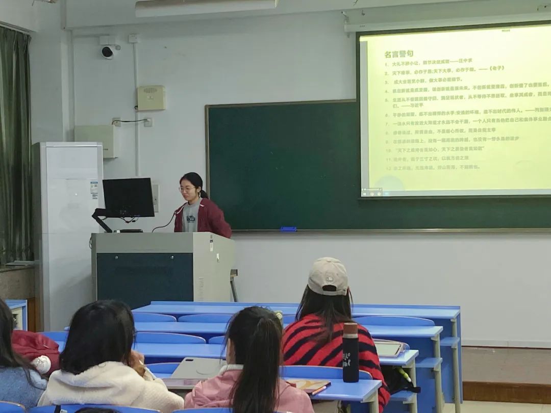 中文系教师、23文学C4班班主任楼逸秋老师以“扬就业之帆,启梦想之航”为主题,并邀请2021级季微晓、王颖两位同学,共同为23级同学们未来的考研、考公等就业指明方向,解惑答疑。