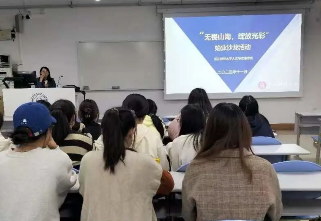 传播学老师,23新传4班班主任郝文琦作为本次活动主讲人,以“无畏山海,绽放光彩”为主题,与同学们展开了关于大学生活的讨论。王阿蒙老师作为特邀嘉宾出席。23新传4班全体同学参加了本次活动积极参与答疑,在郝文琦老师的点拨下得以尽快适应大学生活,把握大学及后续人生方向。