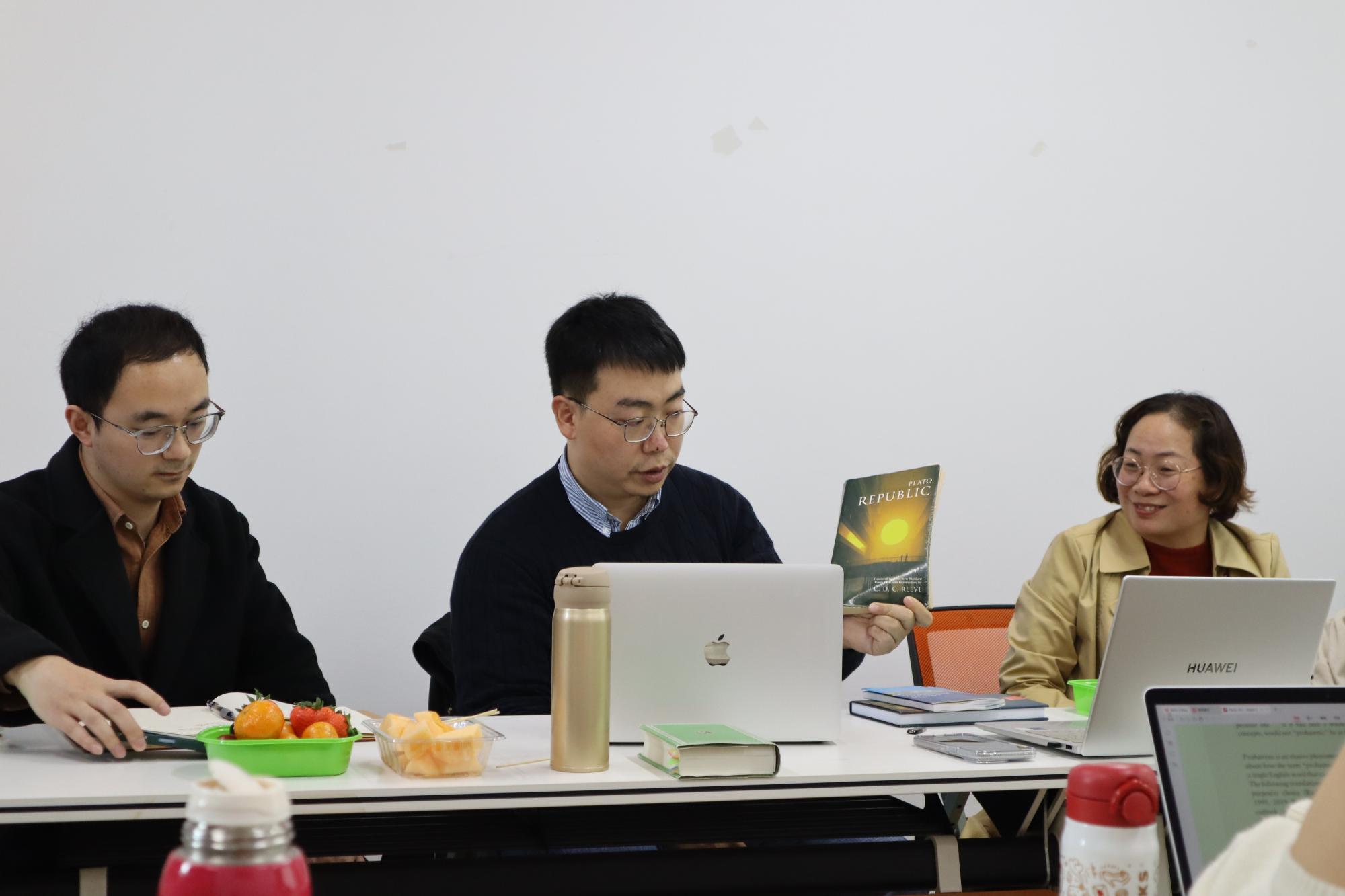 楼403举行。本次读书会由魏梁钰老师主讲,刘财国老师主持,袁慧兰老师以及二十余位同学围桌而坐,共同踏入古希腊哲学的江河。