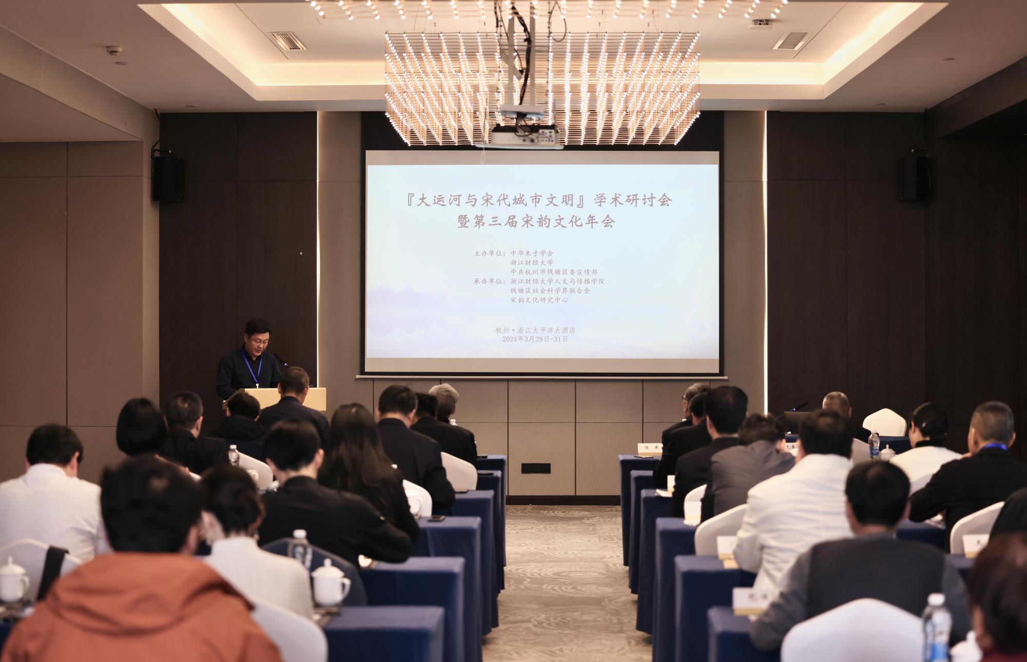 3月29日至31日,“大运河与宋代城市文明”学术研讨会暨第三届宋韵文化年会在杭州举行。浙江财经大学和杭州市钱塘区联合成立宋韵文化研究中心,已成功举办两届“宋韵文化国际学术研讨会”。研讨会旨在研讨宋代学术思想,传承发扬宋韵文化,使宋韵文化与社会经济发展融为一体,彰显新时代浙江精神。本次会议由中华朱子学会、浙江财经大学、中共杭州市钱塘区委宣传部联合主办,由浙江财经大学猫都论坛