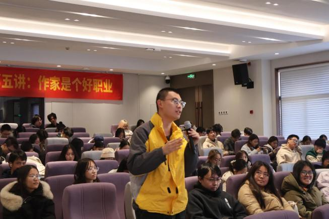 黄咏梅教授在主持时表示,每个人要给自己的人生制定目标,治空虚的病;要有大量的知识储备,留心生活,为自己的创作建立数据库。只要我们怀揣一份理想,为机会做足准备,就能够成就一番事业。大家纷纷表示,通过”作家面对面”交流,不仅对人生目标的清晰度有了显化,更感受到文学和文字的魅力,此次讲座在热烈地掌声中圆满结束。