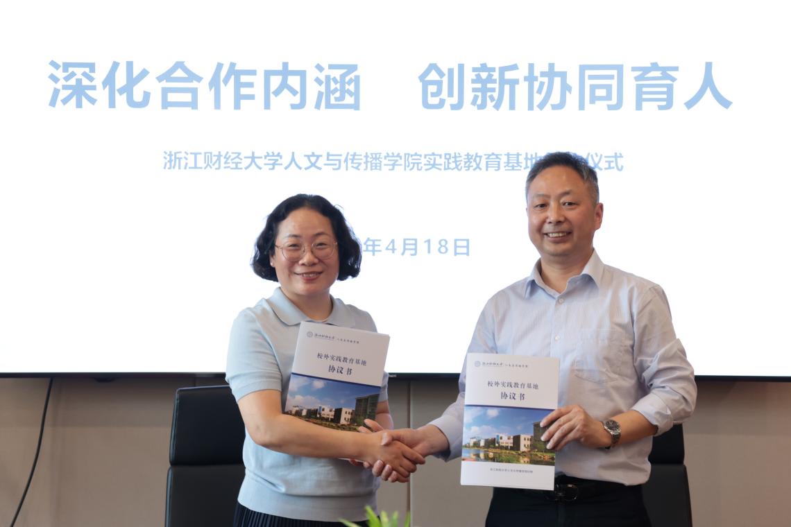 党委副书记袁慧兰为双方代表共同签订《浙江财经大学猫都论坛