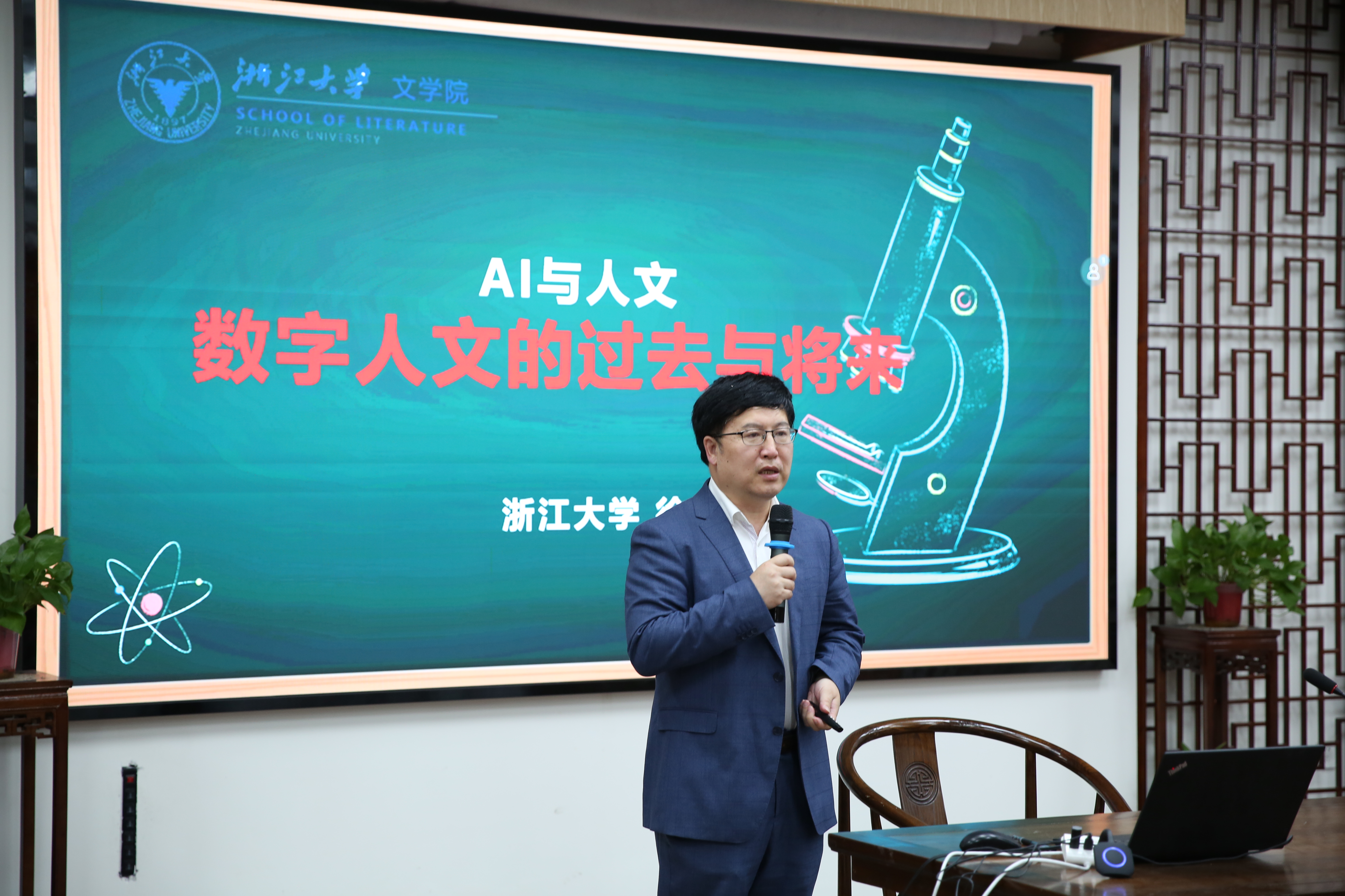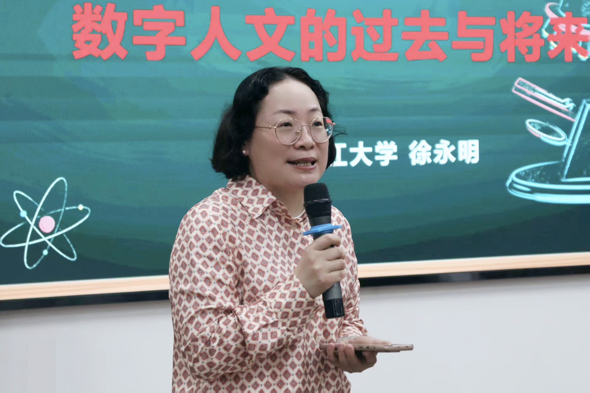 党委副书记袁慧兰老师作开场致辞。她向同学们详细介绍了徐永明教授的学术成就,并深入阐述了本次活动的核心主题。袁老师特别指出,在AI技术迅猛发展的当下,文科生如何寻找发展出路、实现突围,已成为亟待探讨的重要课题。