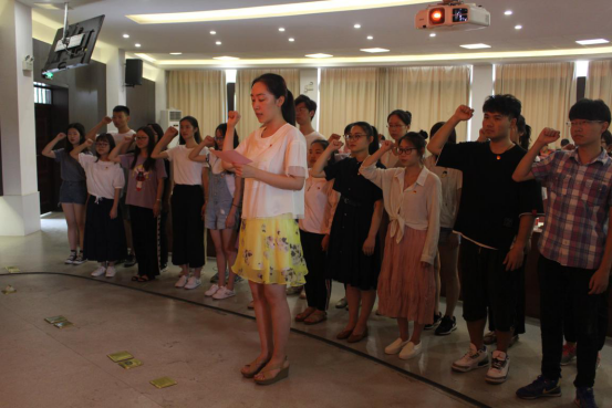 仪式在庄严的国际歌中拉开序幕。主持人宣读了学院党委《关于吸收费嘉豪等13名同志为中共预备党员的决定》和《关于同意翁婷婷等16位同志按期转为中共正式党员的决定》,随后,学院老党员们为新党员们佩戴党徽,新党员怀着极为严肃和神圣的心情,在领誓人的带领下,面向党旗,紧握右拳,以饱满的热情、高亢的声音庄严宣誓。激昂的宣誓响声在会场,令人精神振奋、心潮澎湃。难忘的仪式、铿锵的誓言、坚定的承诺,让新党员感受到深刻的精神洗礼,这将成为新一批预备党员人生的深刻记忆,每一个字,每一句话都提醒着作为党员应尽的义务和该负的责任。