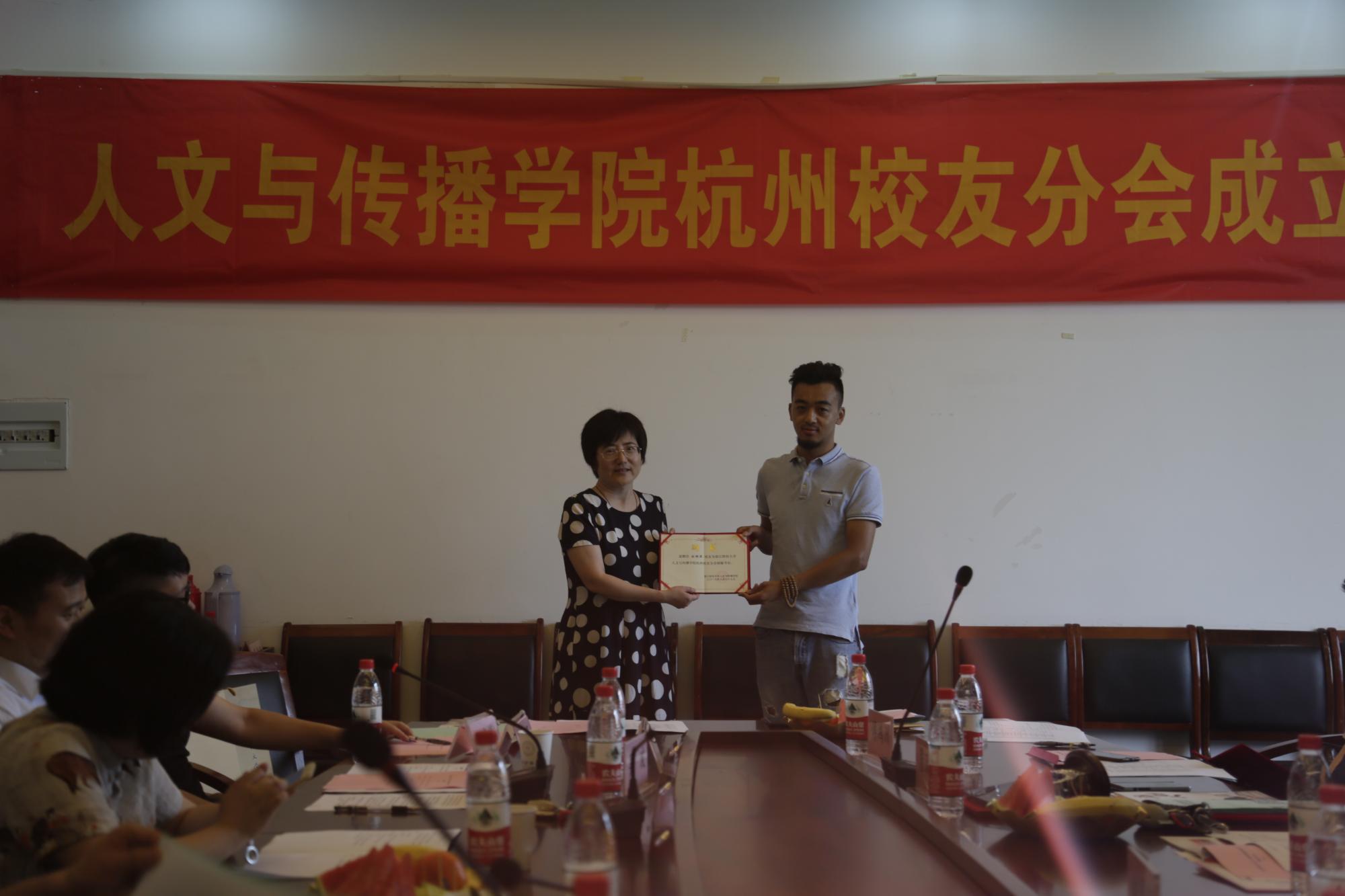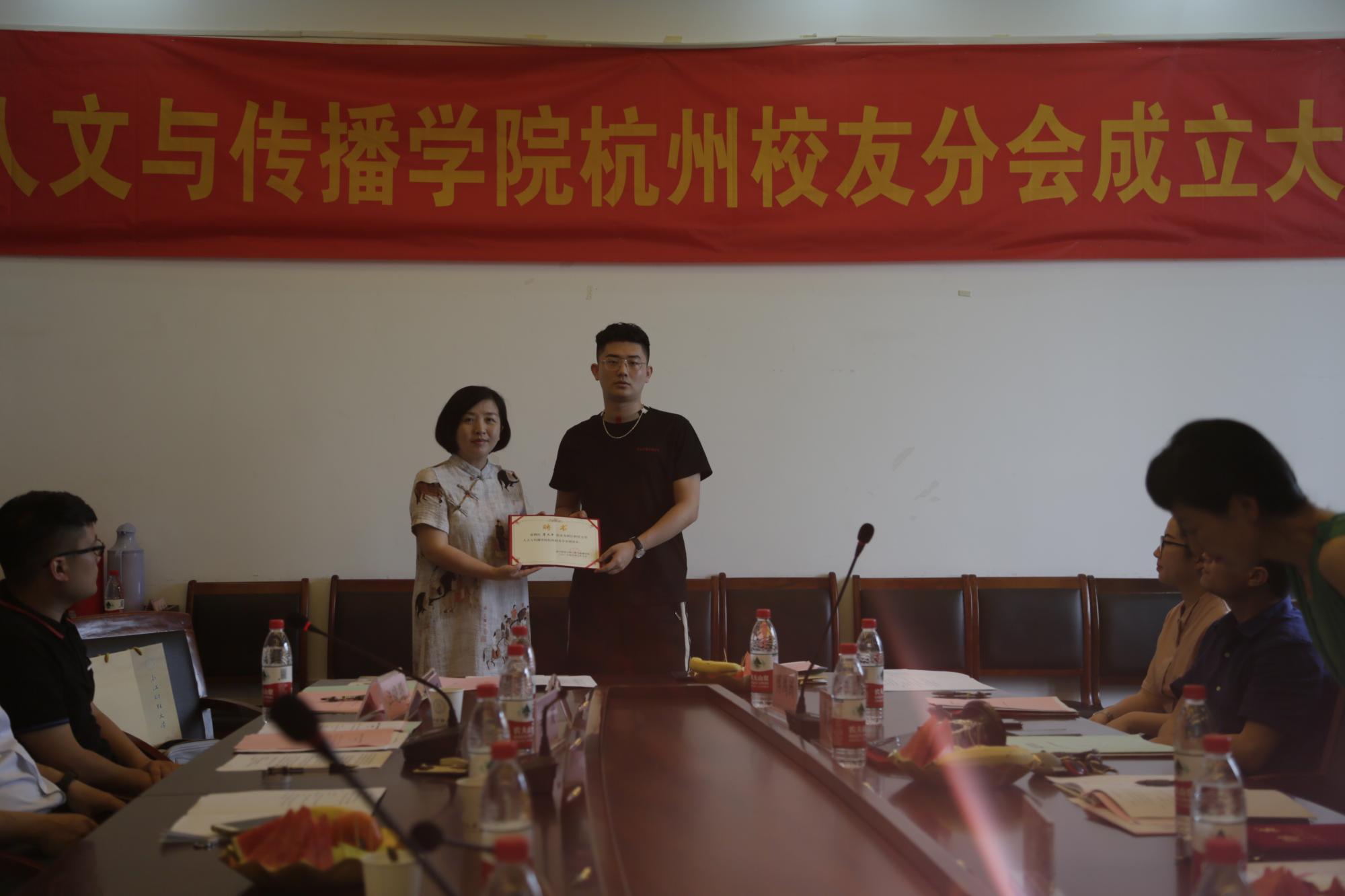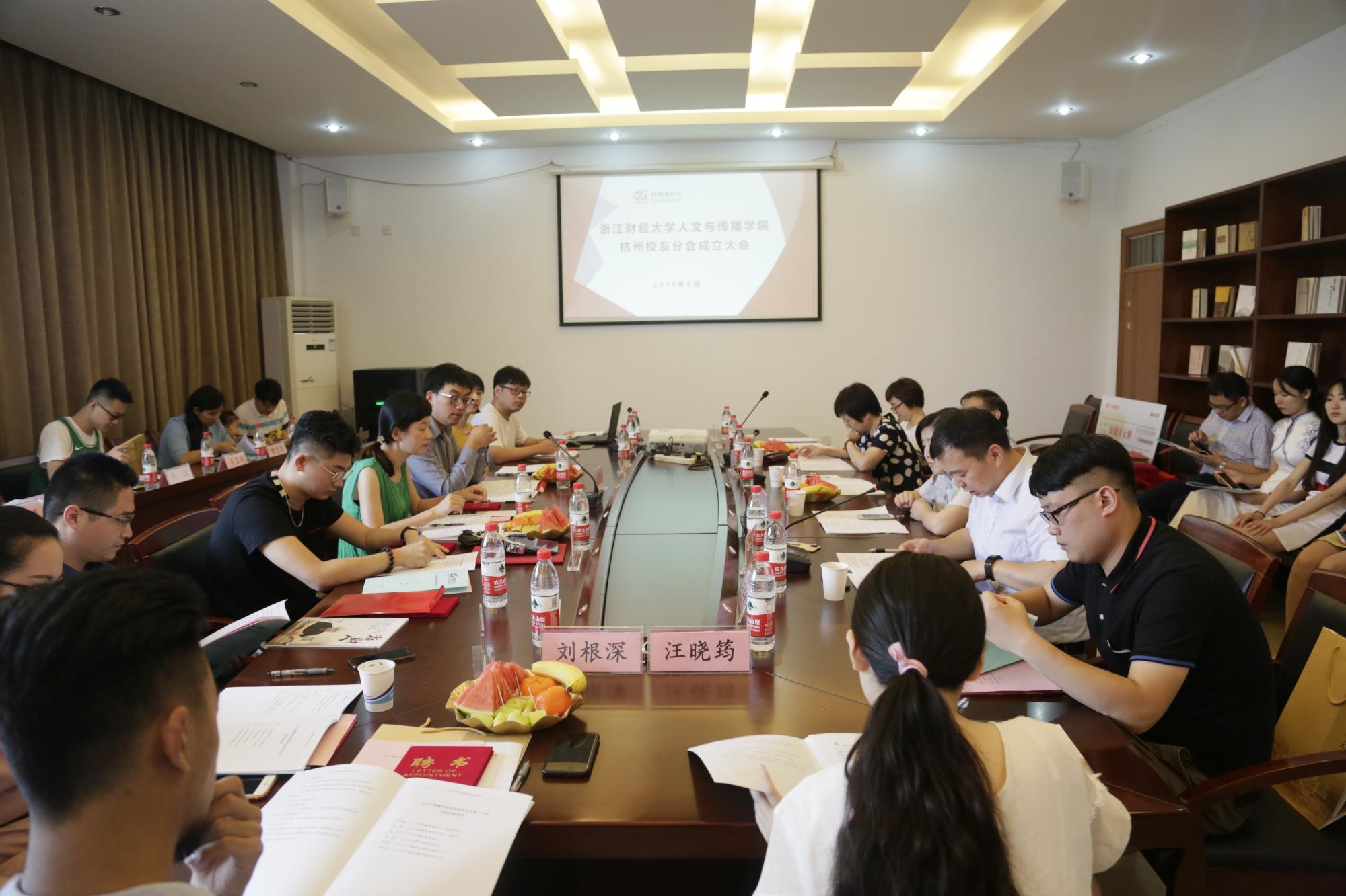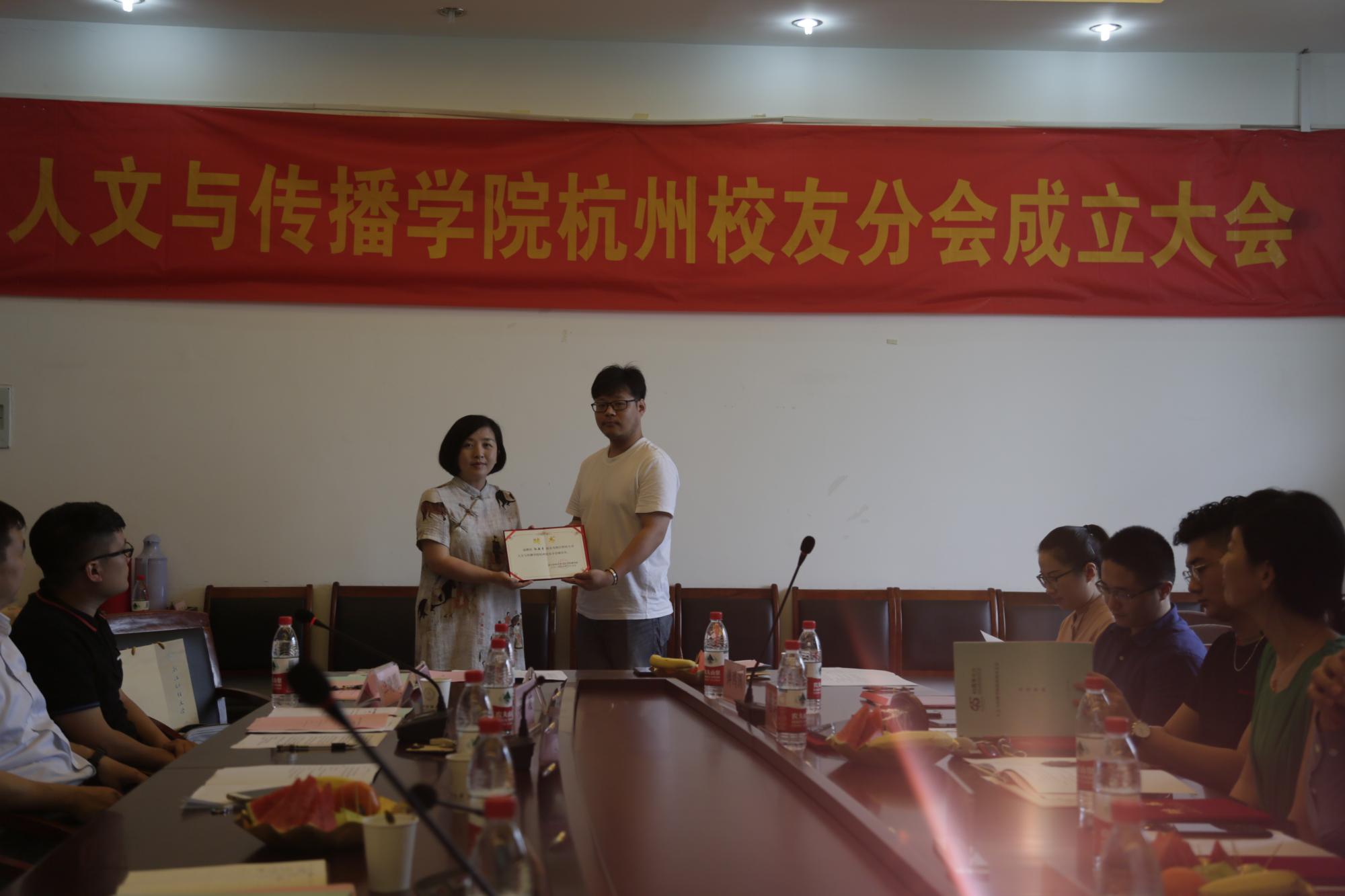 杭州校友分会成立大会在学院楼404会议室举行。学院院长何华珍、党委书记高燕、副院长姚红、副书记吴玻、数媒系主任王文琦,辅导员章立锋、李洁、刘华婷,学院杭州地区工作的校友代表共30余人参加。