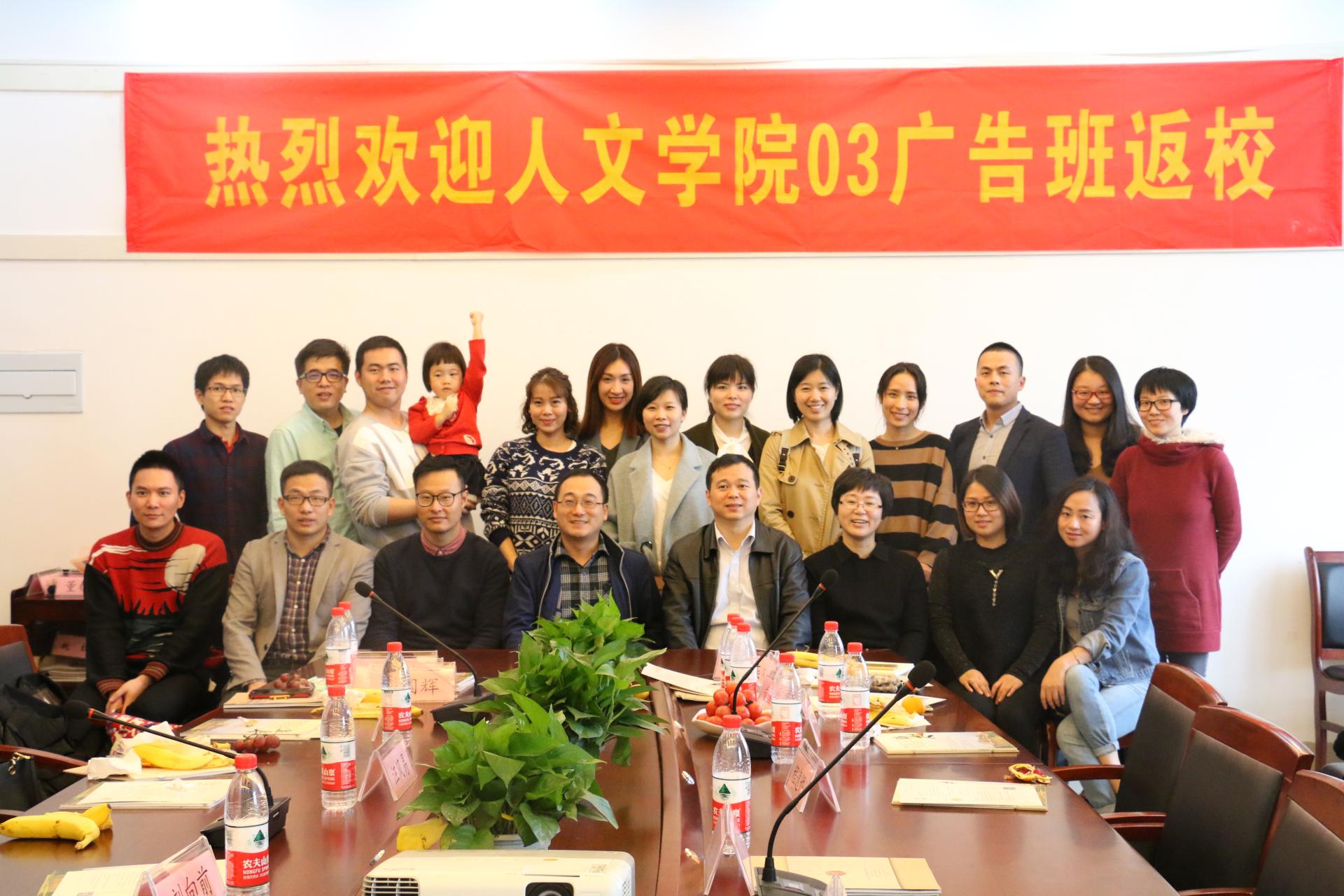 党委副书记吴玻、数字媒体艺术系系主任王文奇、校友联络员章立峰和03级广告班校友参加。