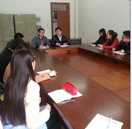 2014年校友工作会议在7号楼405会议室举行。学院党总支副书记吴玻、辅导员章立峰及校友联络人参加会议。