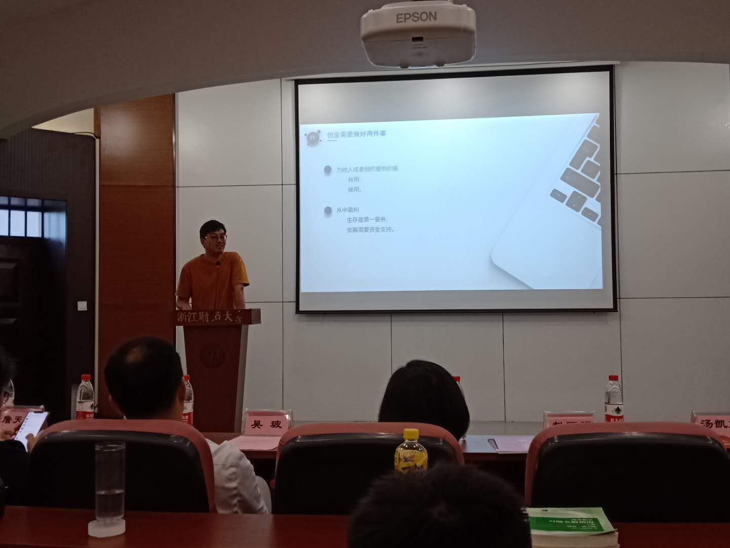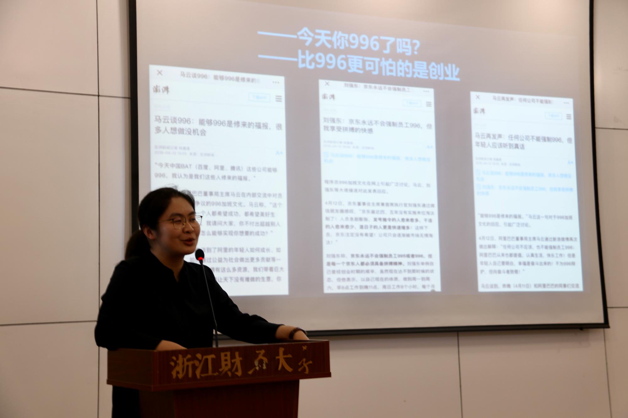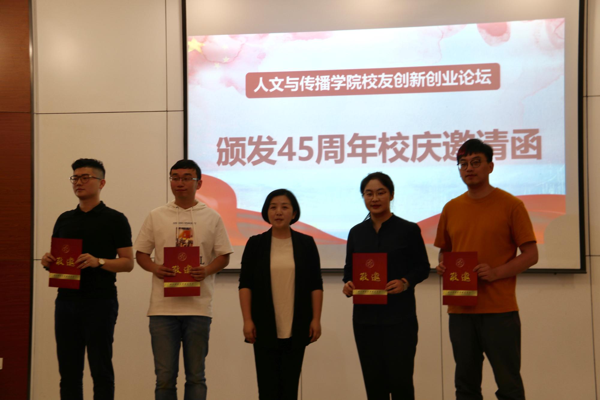 2008级数字媒体艺术专业毕业生、2011届汉语言文字学硕士毕业生,浙江智匠影视文化有限公司创始人赵国强、2009级广告学专业毕业生,杭州创业发展促进会秘书长、下城区青联委员张加林、2009级数字媒体艺术毕业生,嘉兴知白影像股东合伙人汤凯文和2012级广告学毕业生,杭州翰宇建筑咨询有限公司董事,上海芾洲企业管理咨询有限公司董事,浙江聚耀成建筑公司总经理詹天卓四位创业校友与学生畅谈创新创业。学院党委书记高燕、副书记吴玻出席了本次活动,学院近200位学生参加。