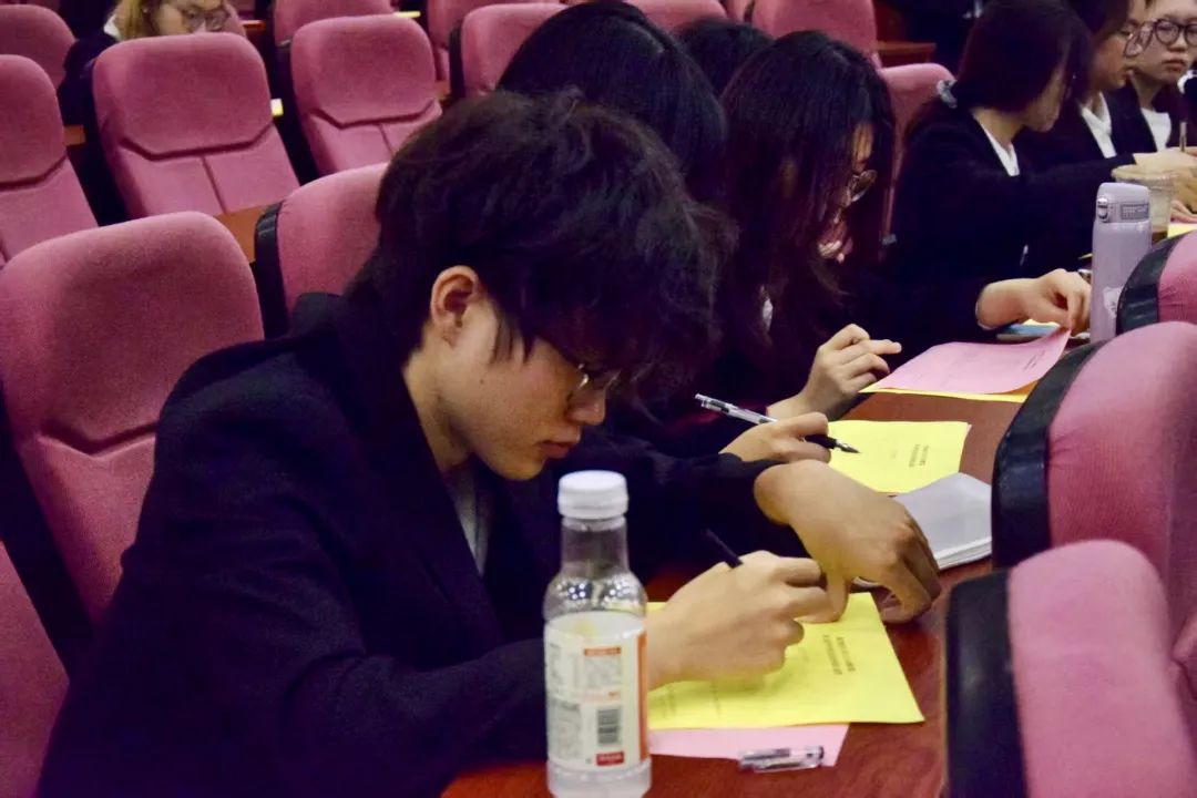 下午13:40,预备会议开始。学生代表们听取了郑靖文同学发表的大会筹备工作报告。