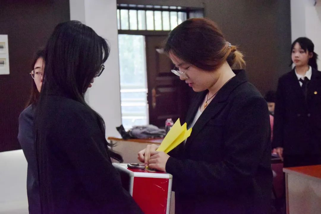 学生会章程(草案);以无记名投票形式选举产生第六届学生委员会委员8名,学生会主席团成员3名。