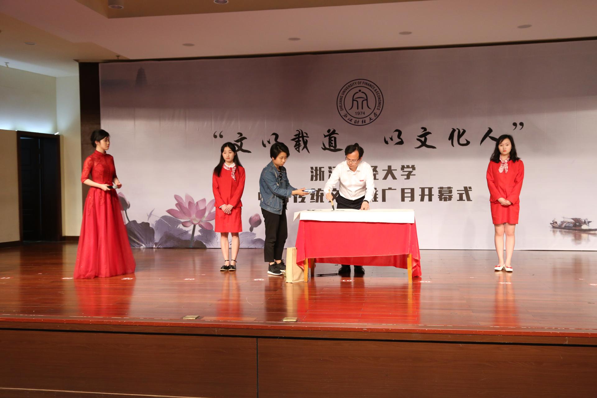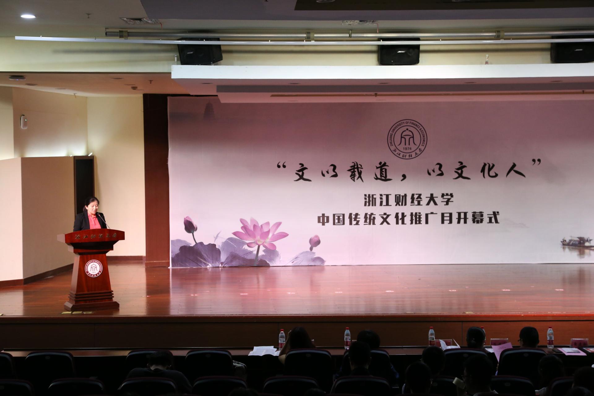 2017年4月20日下午1点30分,“文以载道,以文化人”浙江财经大学中国传统文化推广月开幕式在学术中心第一报告厅举行。党委委员、副校长黄建新出席本次开幕式。党委宣传部、学工部、团委、研工部、猫都论坛