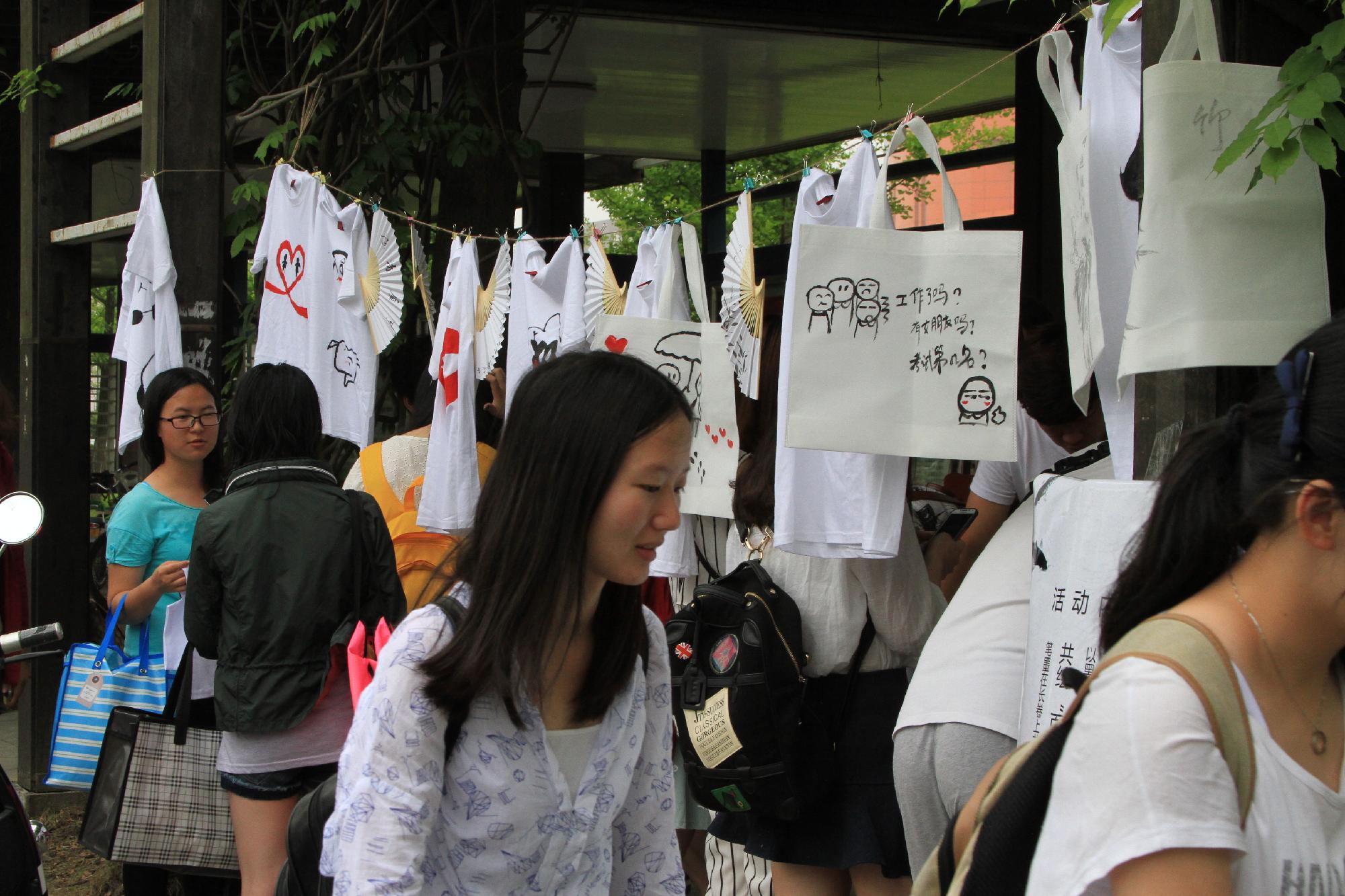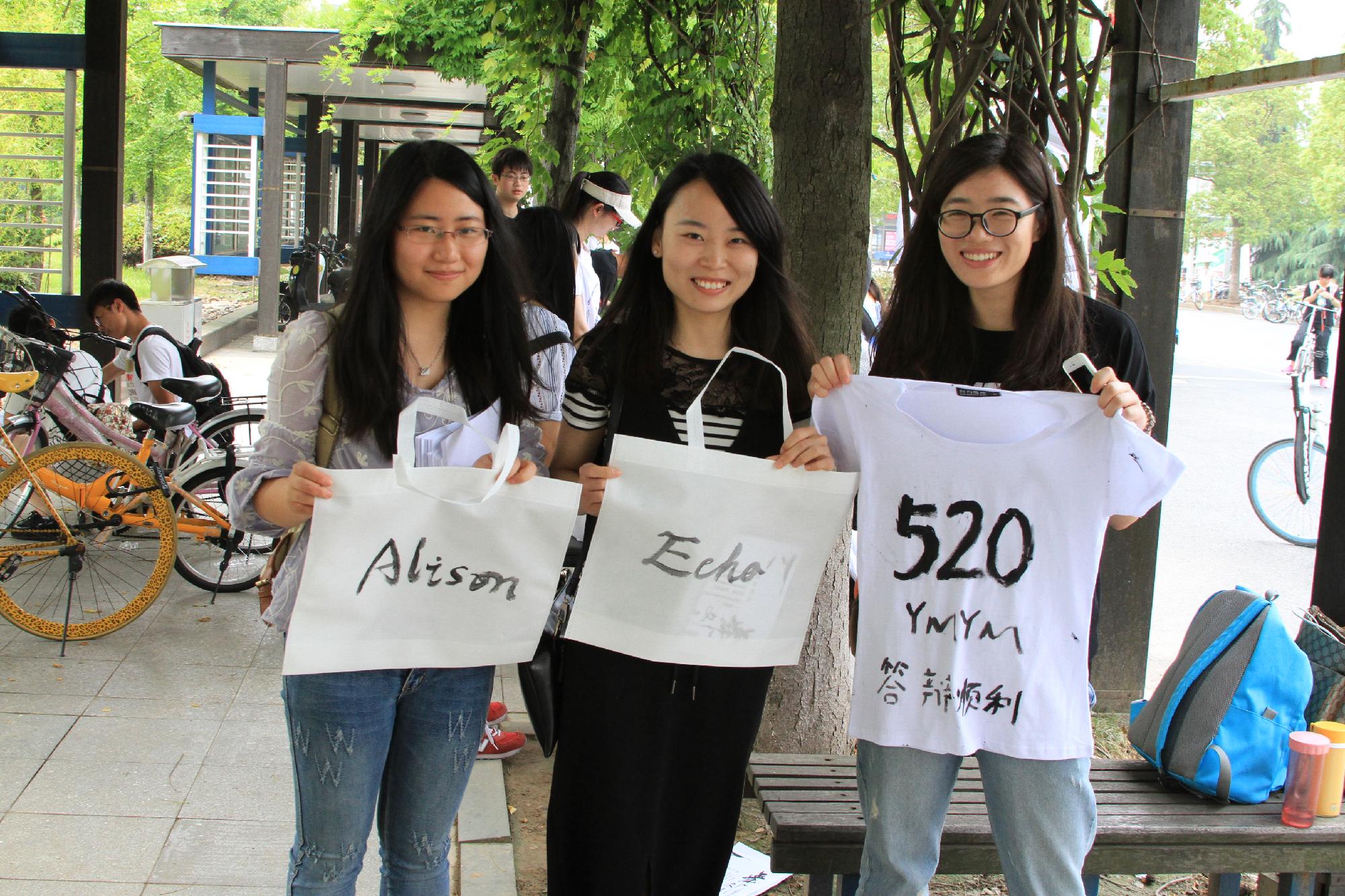 活动由四个部分组成,分别是“创意T恤设计”、“手绘环保袋”、“折扇设计”以及“共绘百米长卷”。丰富且学院气息浓厚的活动吸引了众多同学,文化长廊人来人往,热闹非凡。在T恤设计的环节,参加活动的同学们激发各自的想象力,在T恤上肆意地画着心中各式各样的图案,画出一幅幅最赏心悦目且最有意义的画。在环保袋,纸扇的设计活动中,许多的同学都开始展现他们精湛的书法,一个个拿着笔,一笔一划地仔细书写着。大家在完成作品之后,都露出了满意的笑容。在最后的一个共绘“百米长卷”活动中,同学们都热情地在画布上留下自己的签名,代表一个特殊的印记。在活跃的气氛中,整个活动完满地落下帷幕。