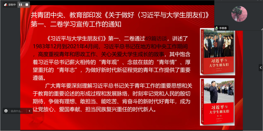 会议之初,李惠惠老师带领同学们围绕《习近平与大学生朋友们》深刻领悟到广大青年在中国式现代化建设中挺膺担当的重要性,同时聚焦于青年如何在人生旅途中坚定前行,肩负起推动社会文明进步的历史重任。新时代的中国青年,以其非凡的想象力和创造力,在经济、社会、科技、文化等多个领域大放异彩,以智慧和汗水为国家发展、人民幸福贡献力量,勇立潮头,引领创新创业、追求卓越的新风尚。