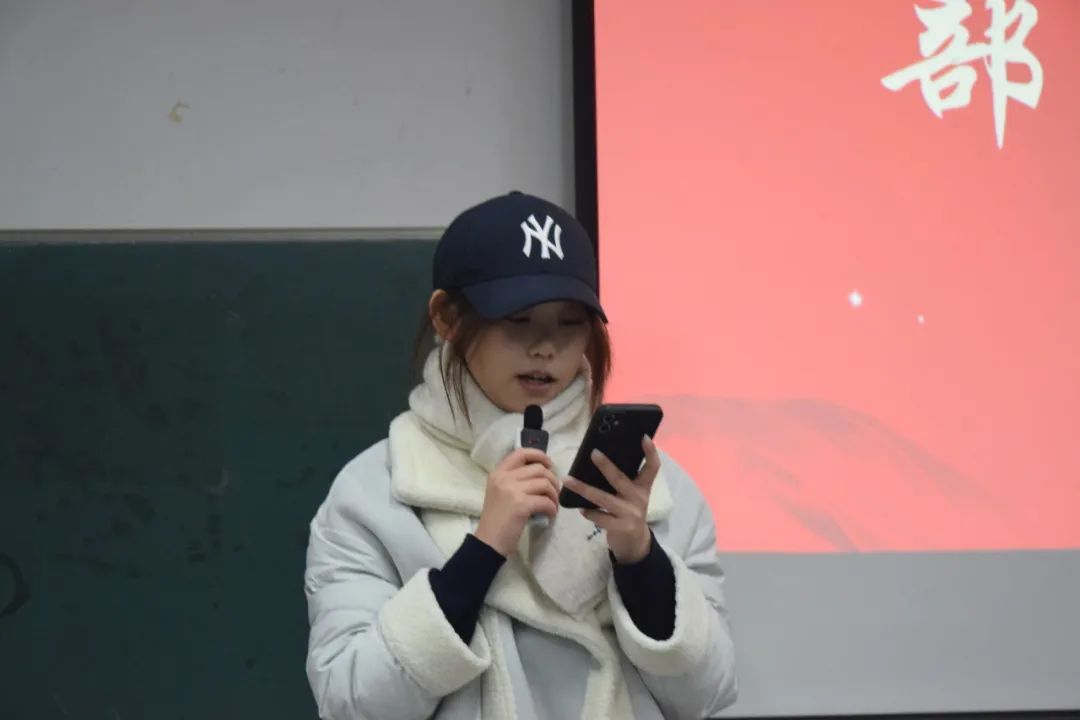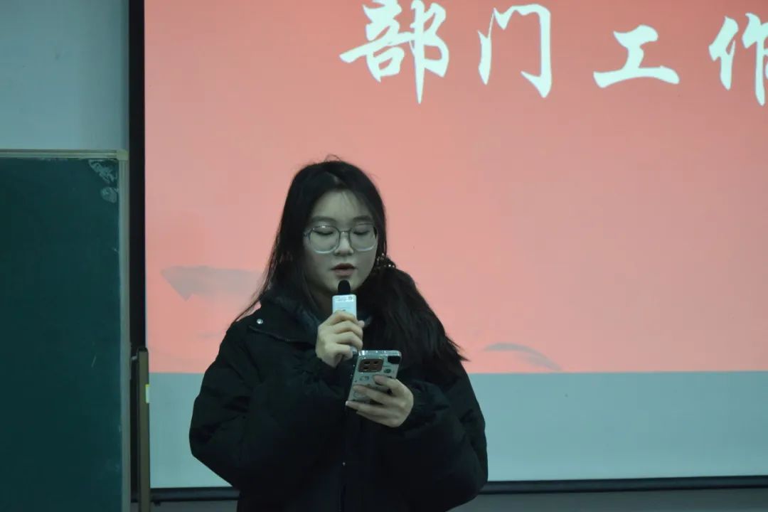 李惠惠老师也肯定了团学各个部门本学期优秀的工作表现,表彰了在团学各部门组织下本年度学院在多项活动中取得的佳绩,就接下来学院的重点工作进行布置安排。最后,李老师还表达了自己的殷切期许,希望全体成员能够在这一场团学之旅中积聚日常工作的宝贵经验,揽获成绩闪烁的点滴荣耀,结交一群志同道合的朋友,让这段经历成为成长之路上的璀璨回忆。