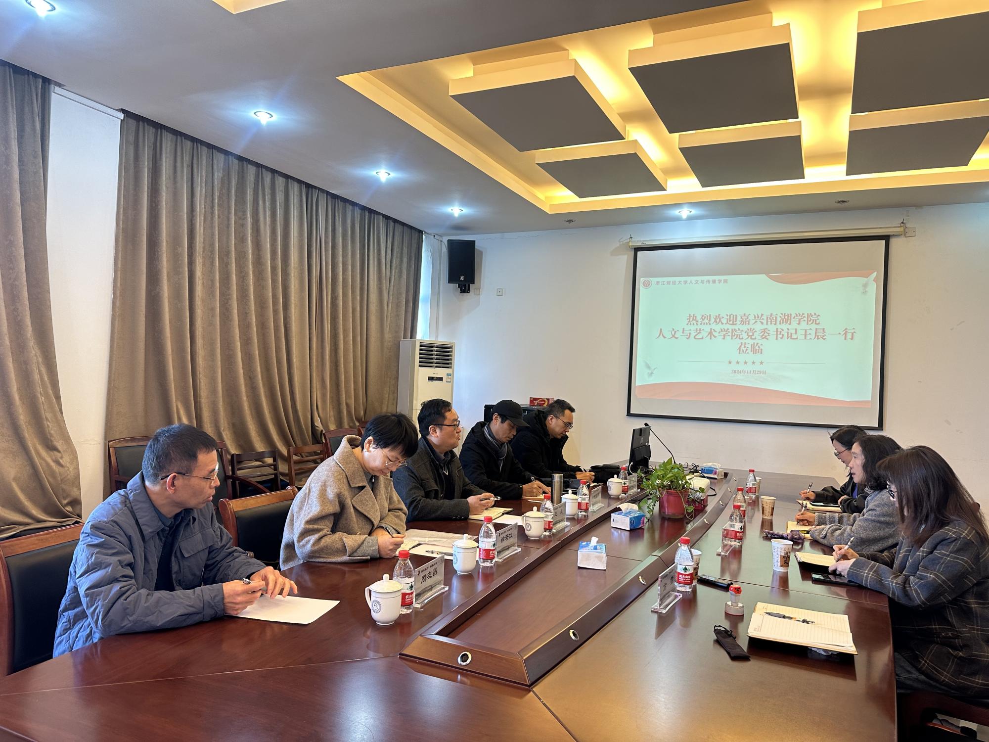 11月29日,嘉兴南湖学院人文与艺术学院党委书记王晨、副院长赵伯祥一行莅临调研。院党委书记罗金艳、副院长林香娥热情接待了来访客人。