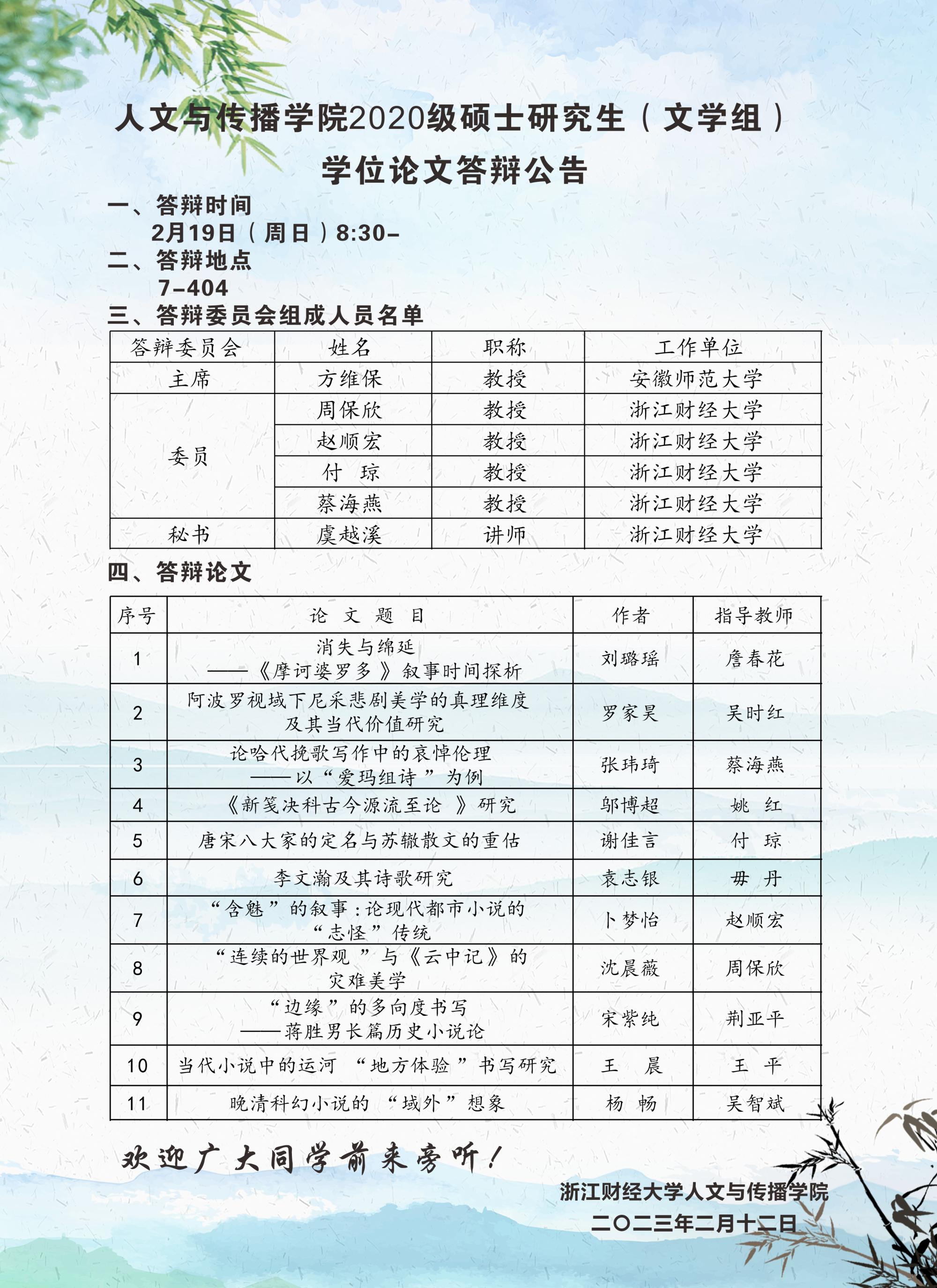 上一篇:猫都论坛 2020级硕士研究生(汉教组)学位论文答辩公告